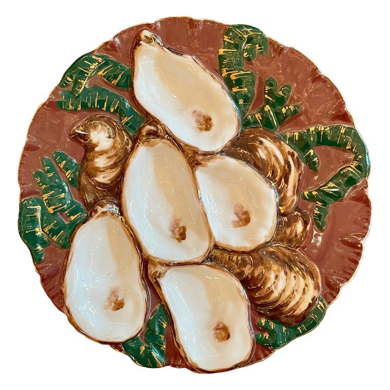 - Antique French Haviland Limoges Porcelain Turkey Pattern Oyster Plate, Circa 1880.