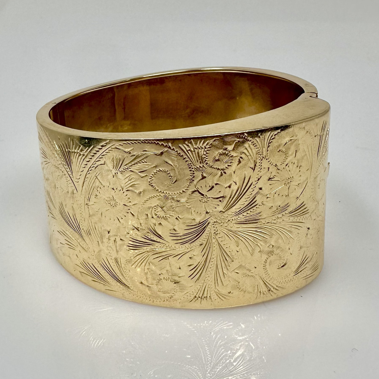 Estate American Art Deco 14 Karat Yellow Gold Engraved Bangle Bracelet.